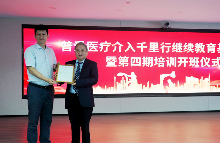 第四期介入培訓(xùn)班,新加入了中國藥科大學(xué),現(xiàn)由我司與中國藥科大學(xué)和南京市第一醫(yī)院三方聯(lián)合辦學(xué),本期介入培訓(xùn)班邀請到了南京市第一醫(yī)院顧建平教授、中國藥科大學(xué)繼續(xù)教育學(xué)院張永澤院長等領(lǐng)導(dǎo)出席本次開班儀式。中國藥科大學(xué)院方領(lǐng)導(dǎo)為我司董事長劉金虎先生頒發(fā)了“中國藥科大學(xué)繼續(xù)教育學(xué)院戰(zhàn)略發(fā)展專家”聘書,并為我司舉行了“中國藥科大學(xué)繼續(xù)教育現(xiàn)場教學(xué)基地”揭牌儀式。