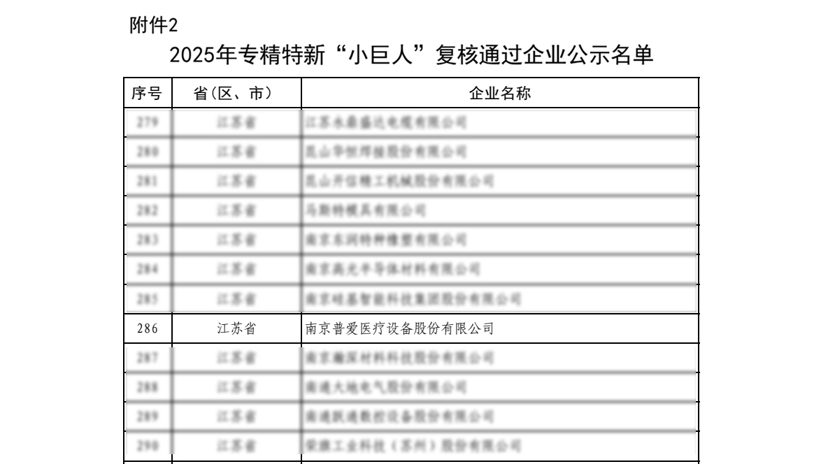 近日,工業(yè)和信息化部2025年專精特新“小巨人”企業(yè)復核結(jié)果公布,南京普愛醫(yī)療設(shè)備股份有限公司憑借22年深耕醫(yī)學影像與手術(shù)機器人設(shè)備領(lǐng)域的技術(shù)積淀和豐碩的自主創(chuàng)新成果,順利通過復審,持續(xù)保有國家專精特新“小巨人”企業(yè)榮譽稱號。